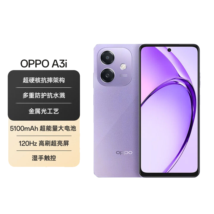 OPPO A3i 6GB+128GB 星辰紫 抗摔抗水溅 5100mAh大电池 45W闪充 120Hz高刷 5G 老人智能手机 国家补贴