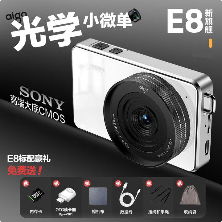 aigo爱国者E8 学生数码照相机可触屏卡片机 金属机身校园高清旅游平替ccd 前后双摄可自拍 64GB白色