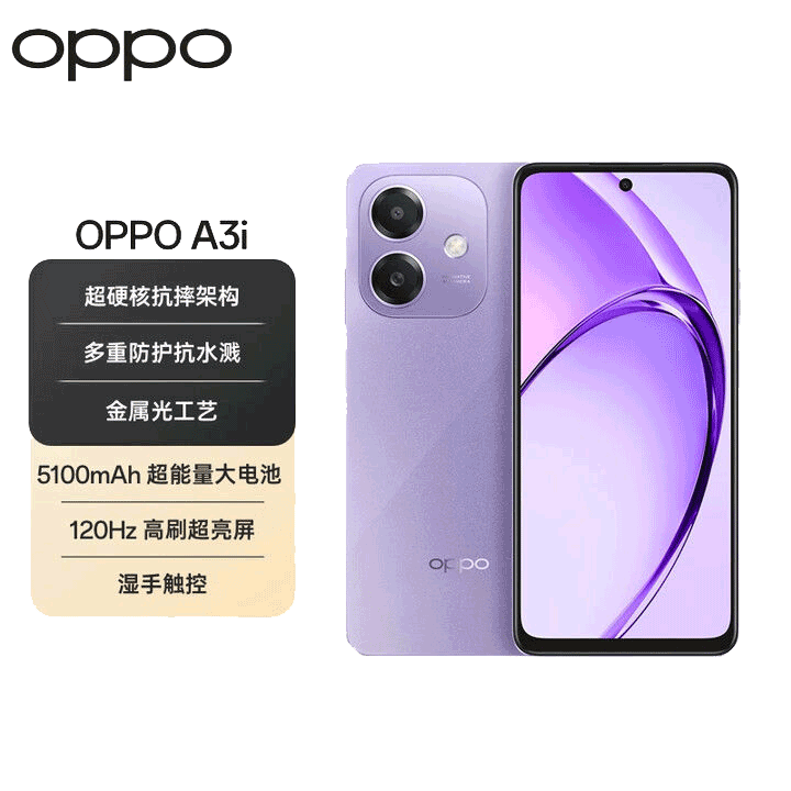 OPPO A3i 6GB+128GB 星辰紫 抗摔抗水溅 5100mAh大电池 45W闪充 120Hz高刷 5G 老人智能手机 国家补贴